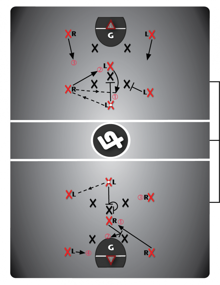 4-On-3 Triangle Play #3B (“Back-Door Quick Stick – Variation”)