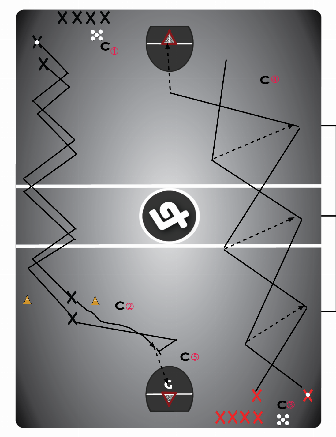 U3BsaXQgcGxheWVycyBhbmQgYmFsbHMgIGluIGhhbGYgb24gYm90aCBlbmRzIG9mIHRoZSBmbG9vci4gIFBsYWNlIDIgY29uZXMgNS03IGZlZXQgYXBhcnQgaGFsZndheSBiZXR3ZWVuIHRoZSByZXN0cmFpbmluZyBsaW5lIGFuZCBnb2FsaWUuDQoNCihDb2FjaCAxKSBzZXRzIHVwIGluIG9uZSBjb3JuZXIgd2l0aCBzb21lIGJhbGxzIGFuZCBwbGF5ZXJzIGxpbmVkIHVwIGFsb25nIHRoZSBlbmQgYm9hcmRzLiBtYWtpbmcgc3VyZSBwbGF5ZXJzIHN3aXRjaCByb2xscyBhcyB3ZSByb3RhdGUgdGhyb3VnaCB0aGUgZHJpbGwuIFN0YXJ0IG5leHQgcGFpciB3aGVuIG9uZSBvbiBvbmUgYmF0dGxlIGJlZ2lucy4NCiANClN0YXJ0IHdpdGggYSBkZWZlbmRlcihubyBiYWxsKSBsaW5lZCB1cCBpbiBmcm9udCBvZiBhbiBvZmZlbmRlcih3aXRoIEJhbGwpLiAgT24gdGhlIGNvYWNoZXMgZ28gdGhlIHBsYXllciB3aXRoIGJhbGwgYmVnaW5zIGpvZ2dpbmcgdXAgdGhlIGZsb29yIGNyaXNzY3Jvc3NpbmcgYmFjayBhbmQgZm9ydGguICBUaGUgZGVmZW5kZXIgIlJpZGVzIiB0aGVtIGRvd24gdGhlIGZsb29yIGJhY2sgcGVkZGxpbmcgYW5kIGtlZXBpbmcgYmV0d2VlbiB0aGVtIGFuZCB0aGUgZ29hbGllLiBPbmx5IGNyb3NzIGNoZWNraW5nIHdoZW4gdGhlIG9wcG9uZW50IGdldHMgY2xvc2UuICBCYWxsIGNhcnJpZXIgc2hvdWxkIG5ldmVyIGdldCBwYXN0IHRoZSBkZWZlbmRlci4gIE9uY2UgcGxheWVycyByZWFjaCB0aGUgY29uZXMuIENvYWNoIDIgd2lsbCB3aGlzdGxlIG9yIHNpZ25hbCB0aGUgc3RhcnQgb2YgYSBvbmUgb24gb25lIGZpbmlzaGluZyB3aXRoIGEgc2hvdCBvbiBuZXQuICBTaG9vdCB0cnkncyB0byBnZXQgYSBxdWFsaXR5IHNob3QgZnJvbSB0aGVpciBzdHJvbmcgc2lkZSwgd2hpbGUgZGVmZW5kZXIgcHJvdGVjdHMgInRvcCBTaWRlIiAgV2hpc3RsZSBkb3duIGFmdGVyIDUgc2Vjb25kcy4gIFBsYXllcnMgZ2V0IGluIGxpbmUgd2l0aCBjb2FjaCAzDQoNCkNvYWNoIDMgc2V0cyB1cCBvbiBvcHBvc2l0ZSBjb3JuZXIgb2YgdGhlIGZsb29yIHdpdGggc29tZSBiYWxscyBhbmQgcGxheWVycyBsaW5lZCB1cCBvbiB0aGUgZW5kIGJvYXJkcy4gVHdvIHBsYXllcnMgc2V0IHVwIG9uIEdMRSA4IGZlZXQgYXBhcnQuIFBsYXllciBjbG9zZXN0IHRvIGVuZCBib2FyZHMgc3RhcnRzIHdpdGggYmFsbC4gIE9uIGNvYWNoIGNhbGwgcGxheWVycyBtb3ZlIHVwIHRoZSBmbG9vciBpbiBhICIyIG1hbiB3ZWF2ZSIgd2l0aCB0aGUgYmFsbCBiZWluZyBjYXJyaWVkIHRvIHRoZSBtaWRkbGUgYW5kIHBhc3NlZCBmb3J3YXJkICJ0b3dhcmRzIHRoZSBib2FyZHMiIGxhc3QgcGxheWVyIHRvIGNhdGNoIHBhc3MgaW4gb2ZmZW5zaXZlIHpvbmUgdGFrZXMgc2hvdCBhdCB0YXJnZXRzIGluIHRoZSBuZXQuICBDb2FjaCA0IGlzIG1ha2luZyBzdXJlIHBsYXllcnMgbWFpbnRhaW4gdGhlIHdlYXZlIGFuZCBsYXN0IHBsYXllciB0byBwYXNzIGlzIHN0aWxsIGN1dHRpbmcgb3V0IHdpZGUgd2hpbGUgdGhlIHNob3QgaXMgYmVpbmcgdGFrZW4uDQoNClBsYXllcnMgdGhlbiBnZXQgaW4gbGluZSBmb3IgcmlkZSBkcmlsbC4=