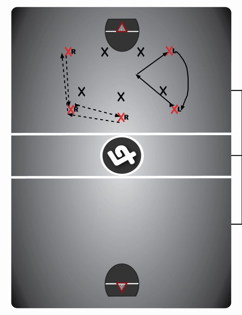 LVdlYWsgc2lkZSByb3RhdGlvbiB3aGVuIHRoZSBiYWxsIGlzIG9uIHN0cm9uZyBzaWRlDQotTDIgKEhpZ2gpIGRvZXMgYSBkb3duIFYgY3V0IHRvIGZpbGwgTDEgcG9zaXRpb24NCi1MMSBib3VuY2VzIG91dCBhbmQgZmlsbCBMMiBwb3NpdGlvbg0KLUNoaXAgZGVmZW5kZXIgdGhyb3VnaCB0aGUgem9uZQ0KLVN0aWNrIHVwIGFsd2F5cyBhIHRocmVhdCB0byByZWNlaXZlIGEgcGFzcyBjdXR0aW5nIHRocm91Z2ggdGhlIHpvbmUuDQoNCi1TdHJvbmcgc2lkZSBiYWxsIG1vdmVtZW50IGxvb2tpbmcgZm9yIFdlYWsgc2lkZSBjdXR0ZXINCi1Nb3ZlIHBvc2l0aW9uIHRvIGNyZWF0ZSBwYXNzaW5nIGxhbmVzIHRvIFdlYWsgc2lkZQ0KLU9wcG9ydHVuaXRpZXMgY3JlYXRlZCBmb3IgcGlja3MsIHBpY2svcm9sbCBhbmQgZ2l2ZSAmIGdvDQo=